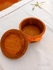 Scatola rotonda, in legno con decorazione in pasta di fimo. Prodotto artigianale.