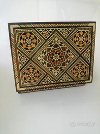 Scatola in legno finemente intarsiato artigianale