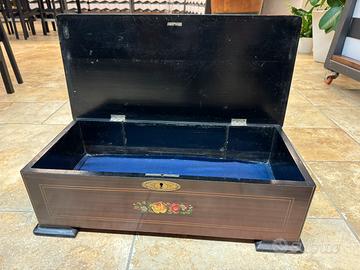 Scatola in legno con coperchio intarsiato completa di chiave