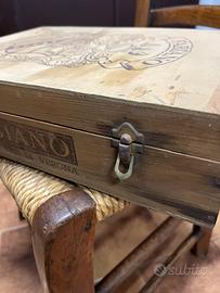 Scatola in legno porta oggetti una volta contenenti set di bottiglie di vino