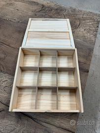 Scatola in legno vintage con scomparti interni misure 25 x 25 x6 cm di spessore