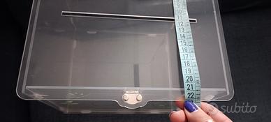 Bellissima, elegante ed adatta ad ogni stile. Dimensioni riportate nelle foto. Con decoro sul davanti, supporto con scritta "Thank you". Perfetta per le buste dei matrimoni o per altri festeggiamenti. Con lucchetto e due chiavi. Fessura sul lato superiore per inserire le buste o biglietti. Verrà inviata smontata. Si monta facilmente ed è dotata di anellini in silicone per bloccarla una volta montata.