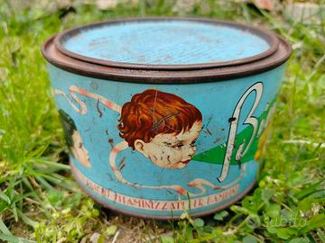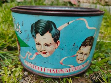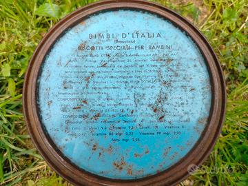 Scatola vintage in latta di biscotti per bambini al fosfato di calcio Bimbi d'Italia, prodotto dai Fratelli Marinai di Firenze, anni 50/60, in stato di buona conservazione, tonda, con disegno litografico raffigurante volti di bambini, diametro 15 cm ed altezza 9 cm. Si valutano proposte d'acquisto. Il contenitore è visibile a Poggio a Caiano (Po). Spedizione disponibile con TuttoSubito.