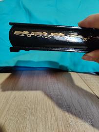 scatola legno rara laccata di nero con raffigurato la fiaba della rana zarina interno laccato di rosso ottime condizioni.