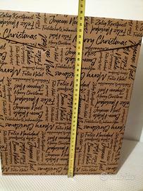 Scatola natalizia in cartone, misure indicate sulle foto, disponibilità di diverse fantasie e diverse quantità.