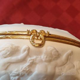 PREZIOSA E RAFFINATA SCATOLA DI LIMOGES CON CERNIERA IN BRONZO DORATO. ORIGINALE, INTEGRA IN OGNI SUA PARTE. MISURE IN FOTO SPEDIZIONE INCLUSA.