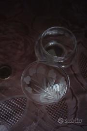 Raffinata scatolina rotonda in cristallo leggero. Ha il coperchio bombato. Sul coperchio è inciso un delicato motivo floreale; anche la base della scatolina è decorata, con incisioni di foglioline. Tutte le incisioni sono fatte a mano.