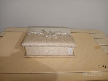 Scatola porta gioie in tessuto ricamato,misure 22x16,5x7 cm.Nuova.
