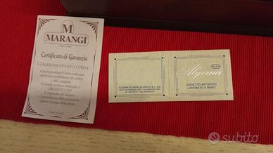 Scatola portagioie in legno marrone con placca in laminato argento lucido con tulipani. Interno morbido con vellutino avorio.