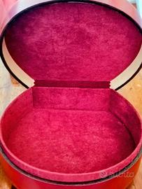 scatola portagioie in vera pelle e argento, foderata in velluto; color bordeaux