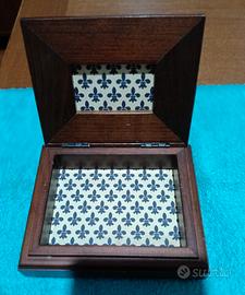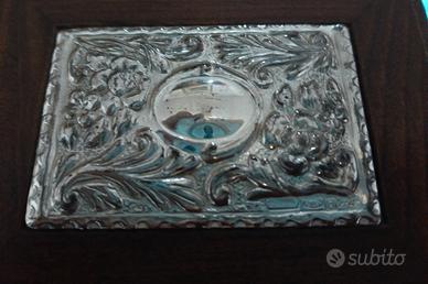 In legno con medaglione argentato, misure cm. 12 x 10 x 5