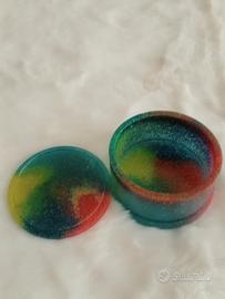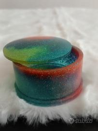 Vendo bellissima scatolina tonda in resina glitter multicolore ideale per piccoli oggetti e gioielli