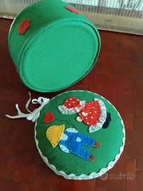 Scatola (di latta) rivestita in pannolenci realizzata completamente a mano.