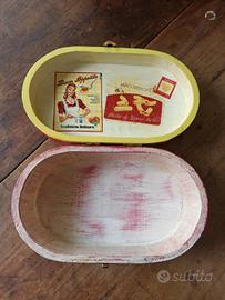 Scatola portaoggetti di legno decorata con tecnica decoupage.