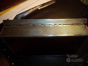 Porta sigarette / portagioie in argento 800 con interno in plastica effetto legno, cm.18 x 11 x 4.