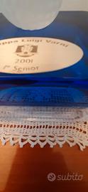 scatola premio golfisti in vetro trasparente e blu con pallina superiore e targhetta argento premio, nuova, spiritoso regalo per golfista.