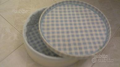 Bella scatola a quadretti con tessuto sfoderabile ed interno rifinito con cordoncino in tinta. Porta oggetti ideale per una camera romantica o per uno splendido regalo ad un bebè. Articolo di alto pregio e rifinitura, con fiocchetto in raso. Vero affare!