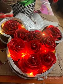 Scatola con rose di Topolino in seta eterne
