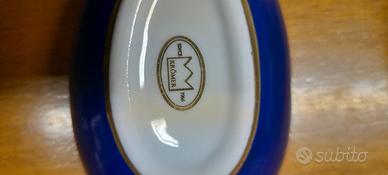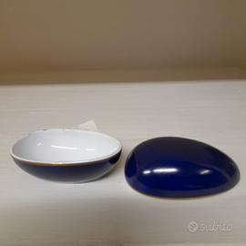 Scatola in ceramica blu con interno bianco a forma di uovo del brend Kromer, azienda tedesca produttrice di articoli originali, di quali. Nuovo con scatola originale. disponibili n.2