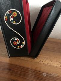 Scatola vintage portagioie , in cuoio , ci stanno collane orecchini , anelli , misure -18-24
