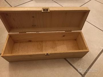 Scatola vuota x una bottiglia, con cerniera bronzata. Misure 32 cm x 10 cm x 9.5 cm. in buone condizioni