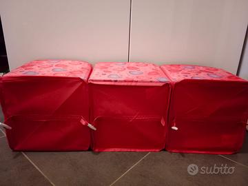 Vendo a € 15 il set di tre scatole portaoggetti a cubo in tessuto impermeabile in foto, ideali per la cameretta.