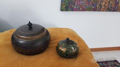 scatole decorative stile etnico smaltate in ottime condizioni 2 misure