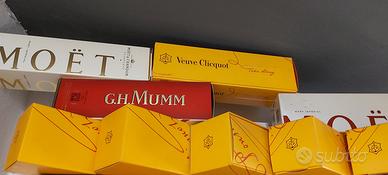 Scatole di latta 4 euro: -Baileys; - Ballantines; - Ramazzotti; - Braulio Scatole di cartone Champagne 2 euro: - Veuve; - Moët; - Mumm; - Pommery Collezione in blocco 50 euro circa 25 pezzi