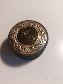 Piccola collezione di 4 scatoline portagioie in velluto rosso o blu e coperchio in lamina di argento sbalzata a mano. Diametro della scatola più piccola 6 cm, le 2 ovali 7x5 e 8x6, quella ottagonale ha diametro 7 cm. In foto sono visibili 2 certificati di garanzia