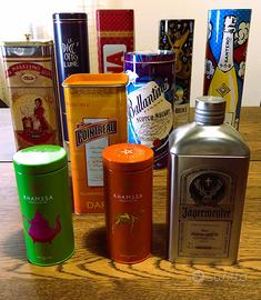Dieci scatole in latta da collezione di vecchie bottiglie (una è un contenitore per spaghetti). Scatole di qualità, design retrò, ideali per esporre ed aggiungere un tocco di stile a qualsiasi ambiente, ma anche per conservare bottiglie. Sono tutte perfette. Il contenitore per gli spaghetti “ Magazzino Asciutto “ è del 1986. Grazie.