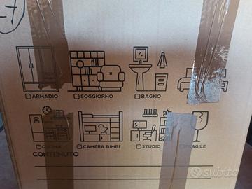 vendo diverse scatole in cartone robusto per imballaggio di libri, stoviglie, suppellettili, vestiario, ecc. Adatte per il trasloco o per conservare gli oggetti in garage/cantina/solaio