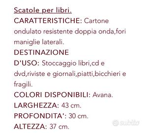 Scatole per trasloco varie misure utilizzate una sola volta, come nuove. Disponibili un centinaio circa, prezzo speciale se comprate in stock.