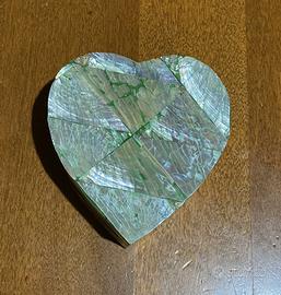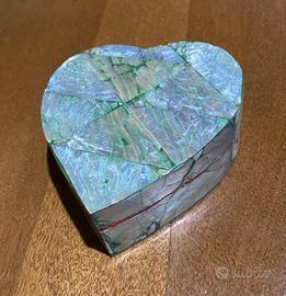 Scatoletta contenitore, rivestita internamente con carta vellutata ed esternamente in madreperla. Bellissima come porta gioie o per contenere un regalo prezioso.