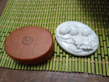 bella scatolina Albachiara porcellana.legno e porcellana,disegno floreale priva di scheggiatura.