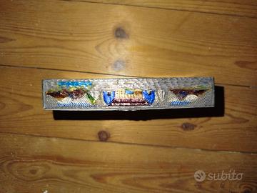 Scatola gioiello indiana antica i provebile argento ( non sono sicuro che sia argento) intarsiata con pietre di vari colori in alcune parti l intarsio e danneggiato come si vede in foto..molto bella misura lunghezza cm 14 larghezza cm 9 altezza cm 3 non spedisco ritiro a Camposampiero