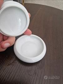 Bellissima scatolina vintage in porcellana bianca. Perfetta per conservare piccoli oggetti preziosi o come elemento decorativo.