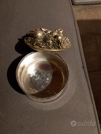 vendo deliziosa scatolina in peltro finemente lavora. dimensioni 7 x 3.