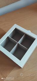 contenitore leggero in legno di balza,grigio e bianco ideale per il tè o anche per bigiotteria,perché trasparente.