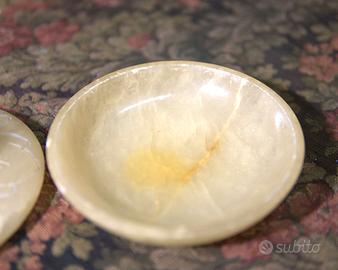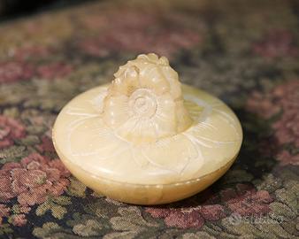 Scatolina vintage portagioie alabastro intagliato con motivi floreali. piccoli difetti. diametro 17 cm