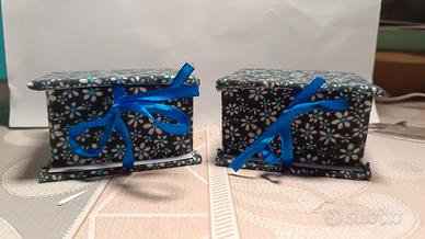 scatoline bomboniera ricoperte in stoffa , per ordini più grandi e colori diversi chiedete informazioni queste due scatoline €5