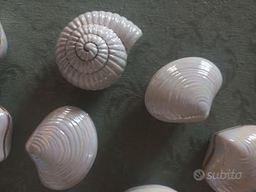 Vendo lotto di N.17 scatoline in ceramica madreperlata con base e coperchio con profilo dorato. Varie forme rappresentanti frutta secca ( noci, castagne, nocciole, mandorle) o conchiglie . Adatte anche per bomboniera.