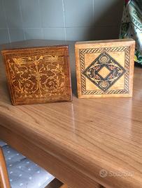 5 preziose scatoline (acquistabili singolarmente) in legno intarsiato, prodotte a Sorrento da esperti artigiani intarsiatori. Sono oggetti di antiquariato in quanto risalgono al periodo anni '40 -- anni '50.