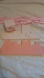 scatoline porta confetti / caramelle, color rosa, 20 pezzi, complete di nastrini per chiuderle, dimensioni 5x5 (prezzo trattabile)