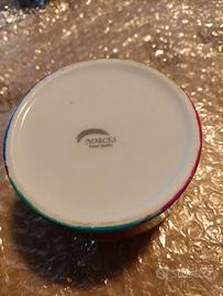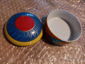 Bellissima scatolina vintage Nobles con coperchio, dipinta a mano. Perfetta per conservare piccoli oggetti preziosi o come elemento decorativo. Diametro 9,5 x 6 - Scatola rotonda con coperchio. - Dipinta con colori vivaci e dettagliati. - Motivi floreali e geometrici. - Realizzata in ceramica di alta qualità.