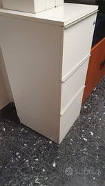 Vendo schedario 3 cassetti laminato bianco IKEA fornito di cartelle sospese e chiave in buone condizioni.