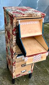 Schedario veneziano in legno e stoffa molto particolare e vecchio Misura 120altezza 40 profondità 37 larghezza