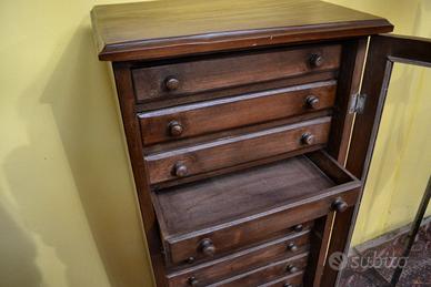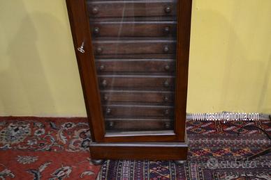 Bellissimo schedario-classificatore in legno di rovere stile inglese a vetrina , dove all’interno troviamo 12 cassetti con pomelli in noce.