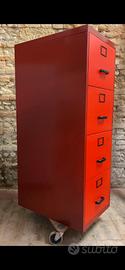 Classificatore schedario ECCENTRICO in ferro degli anni '60-'70 restaurato col. Bordeaux e rosso.