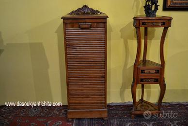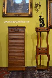 Delizioso schedario -classificatore in legno di rovere stile inglese con frontale a serrandina , all’interno si celano 8 cassetti portadocumenti estraibili .