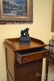 Intramontabile schedario – classificatore stile inglese in massello di rovere, piano superiore con ringhierina e cassetto sottostante, nella parte inferiore una serrandina dove all’interno si celano sette cassetti estraibili portadocumenti.